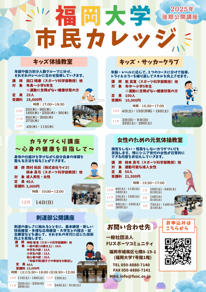 2025年度後期福岡大学市民カレッジ(スポーツ系実技講座)を開講します!