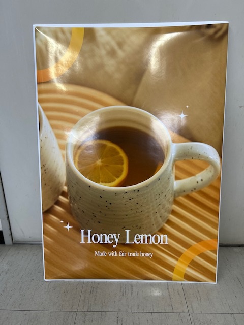 フェアトレードのはちみつを使用したはちみつレモンを提供します。