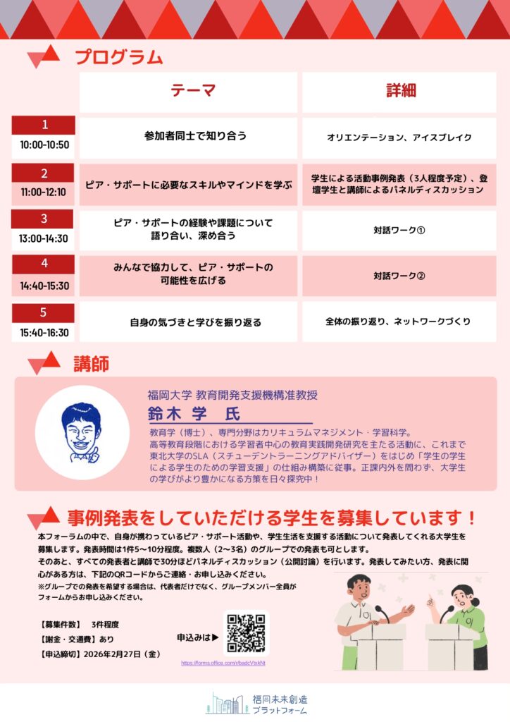 3/26(木)「ピア・サポートフォーラム~互いに思いやり、助け合う関係性を育む~」参加者募集のご案内(福岡未来創造プラットフォーム)