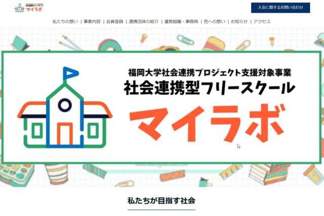 社会連携プロジェクト支援制度採択事業「見たい 知りたい 福岡大学」~福岡大学の教育資源を活用した社会連携型不登校児童生徒支援~では、社会連携型フリースクール「マイラボ」のホームページを開設しました! 今後、こちらのホームページから、体験学習などの情報を発信していきます。 また、オンライン授業や動画配信も行います。 ご興味のある方は、ぜひご覧ください。 ★ホームページはこちら